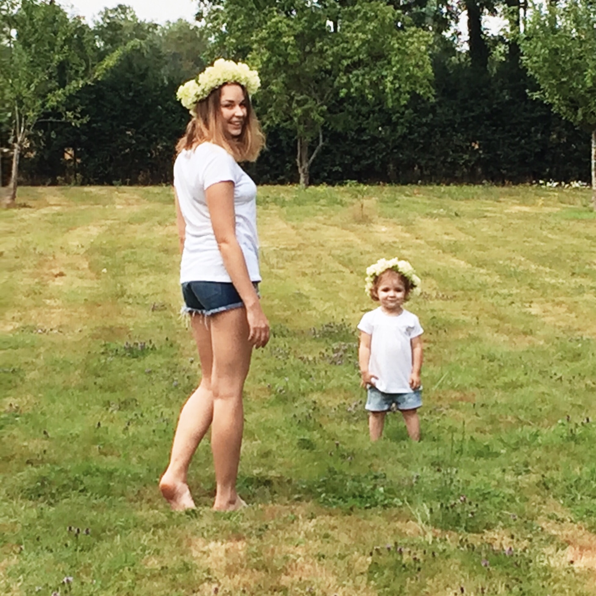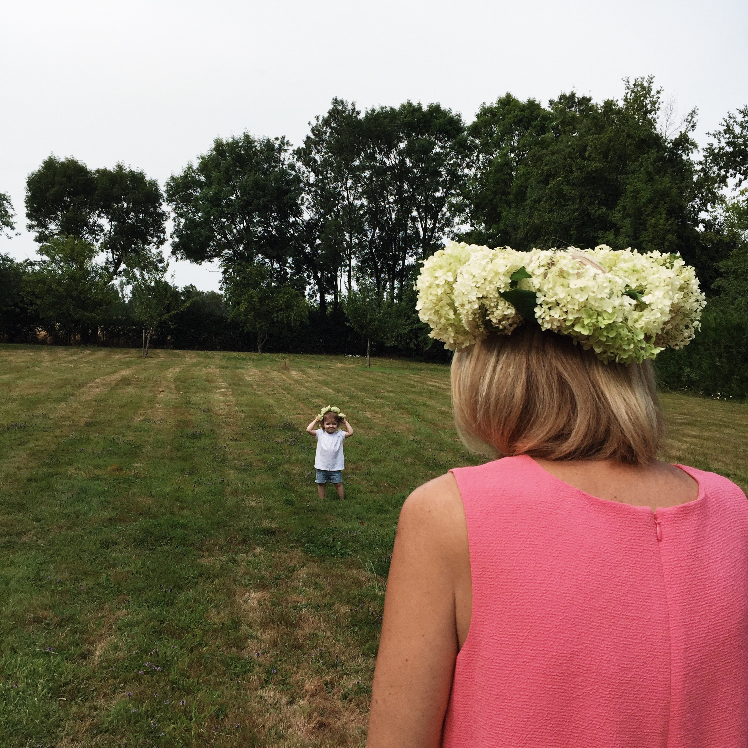 Cela faisait un moment que j’avais en tête de créer une couronne de fleur, d’ailleurs j’an avait fait faire une pour Jade lors de son baptême en juillet de l’année passée mais j’avais été légèrement déçu car elle n’était pas ajustée pour tenir en place sur ma petite bougeotte. Et puis je suis passée devant les hortensias du jardin de la maison de campagne… Je ne pouvais pas attendre plus, elles sont déjà en train de faner !