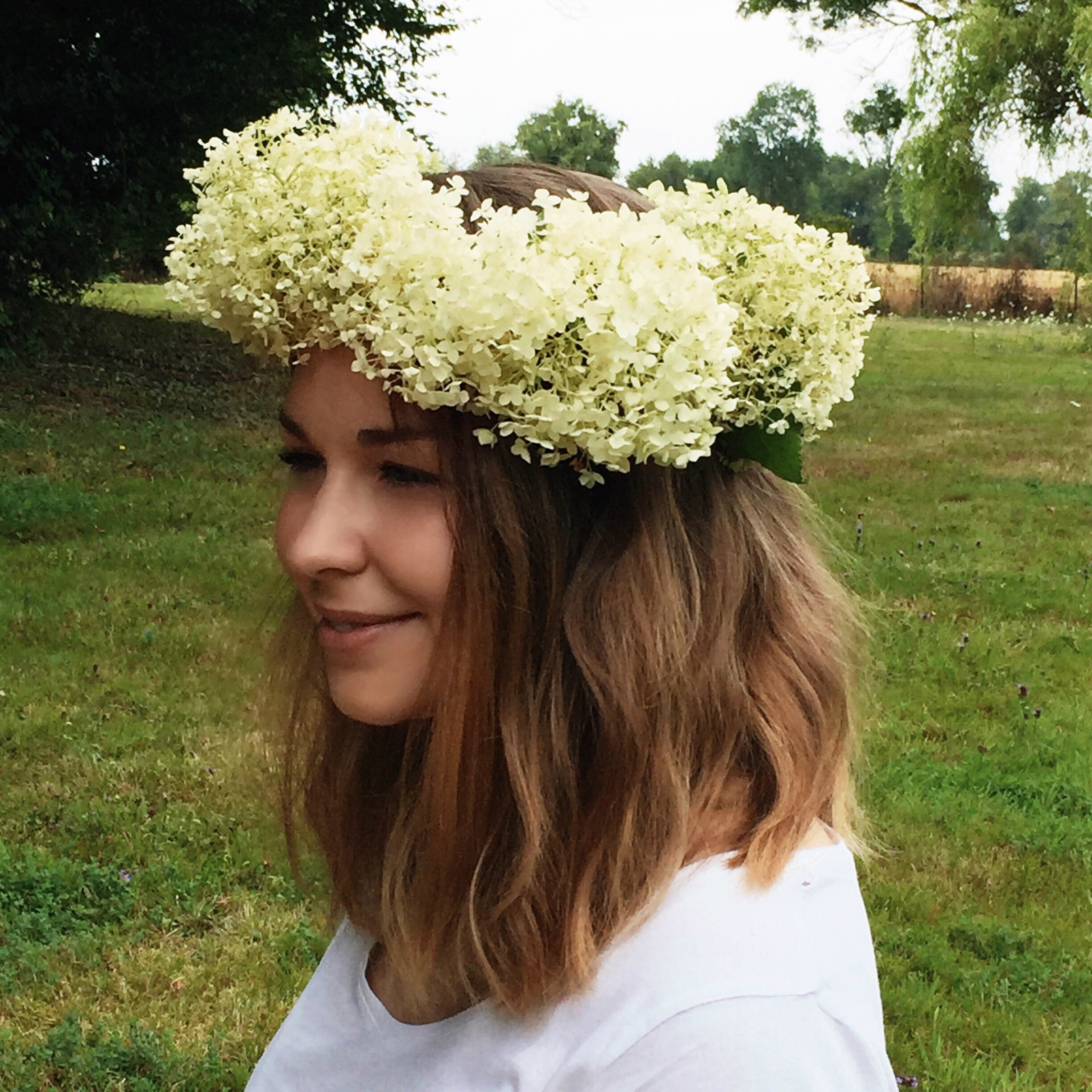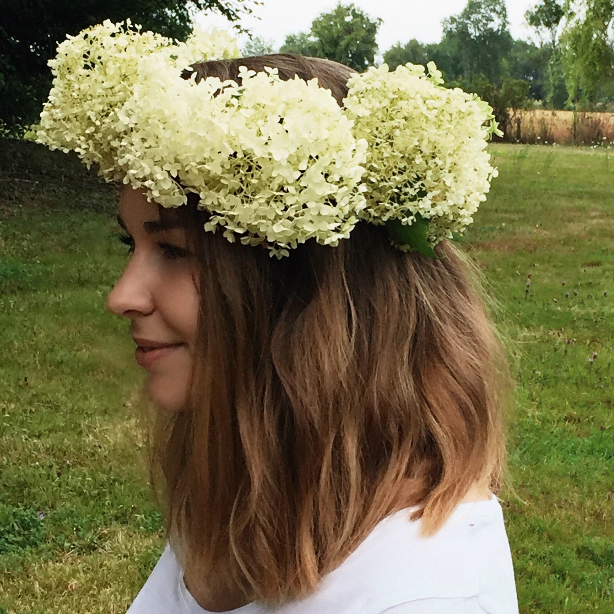 - Des hortensias, mais vous pouvez faire une couronne avec d’autres fleurs