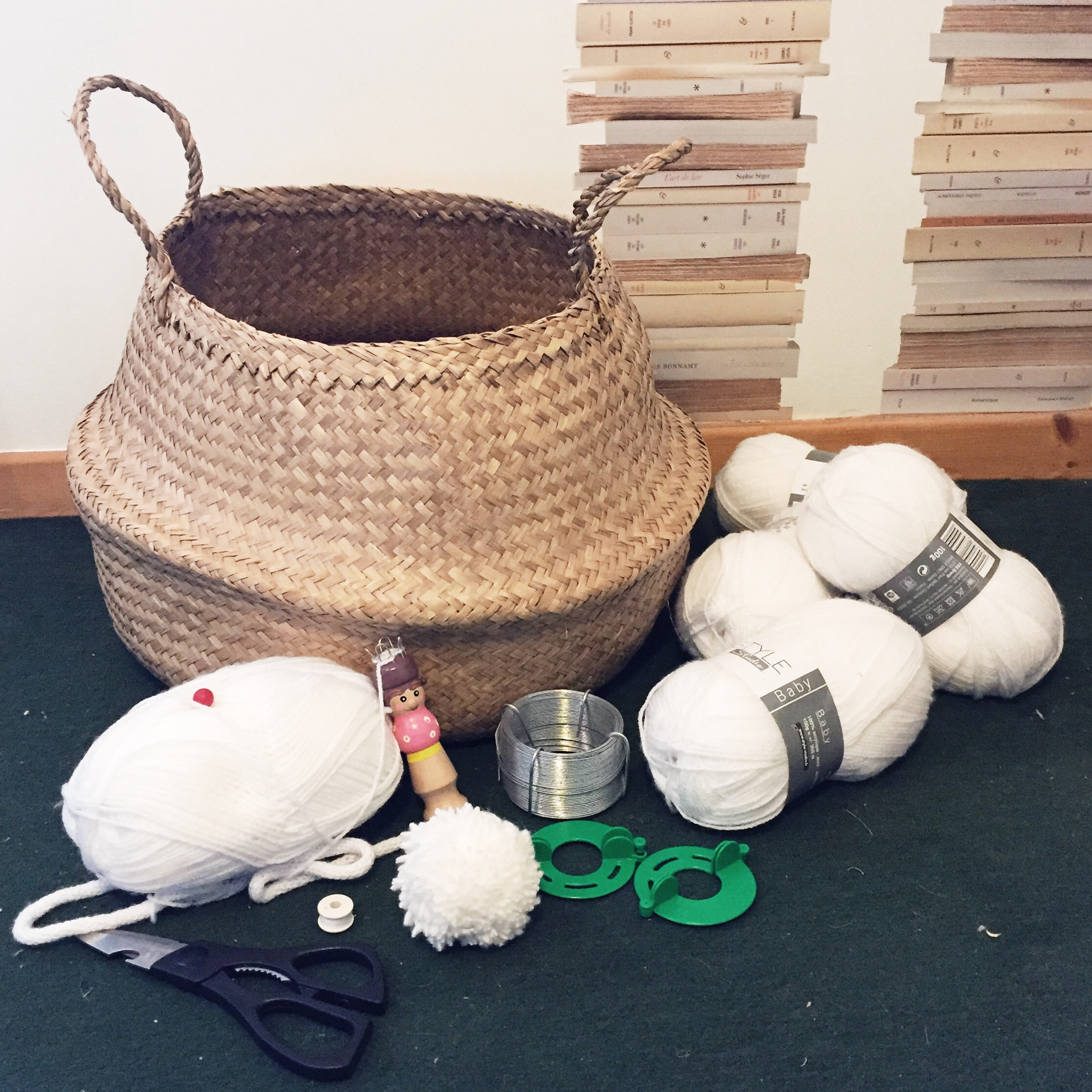 Les paniers boules fleurissent de partout et je les aime tant ! J’ai succombé à leur charme bohème ! Mais pour ce DIY j’ai décidé de les personnaliser avec des pompons et du tricotin ^^