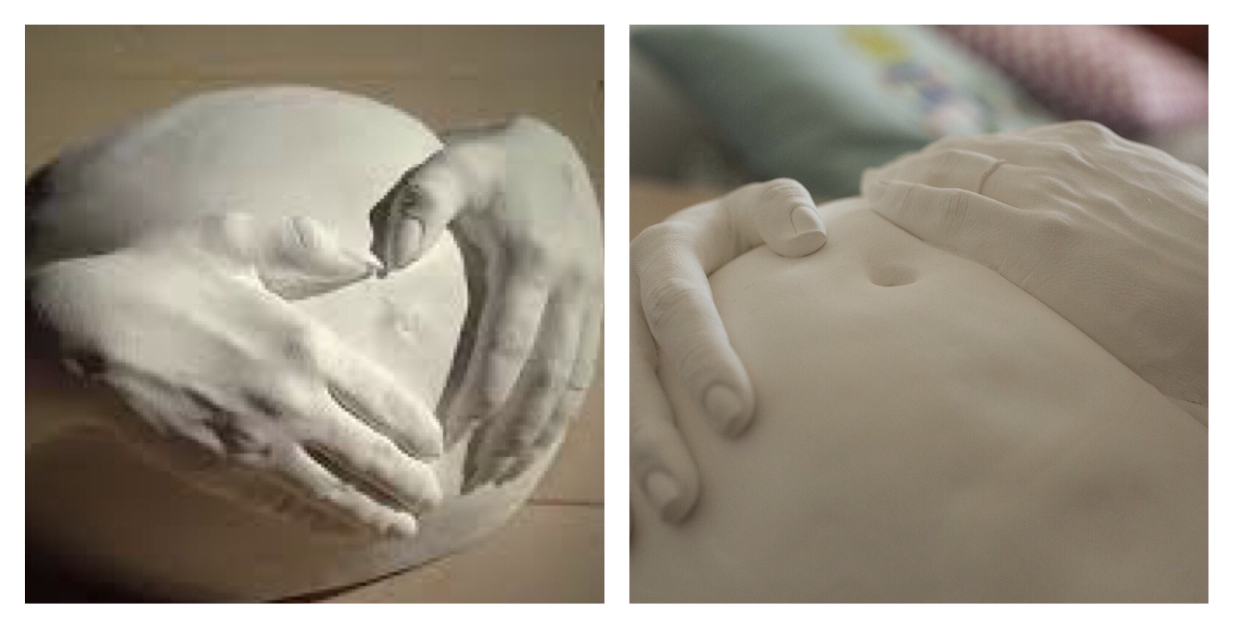 je dois vous avouer que je n’étais pas friante de ce genre d’activité que je trouvais légèrement Kitchouille à l’instar des séances de Body Panting. Mais ces moulages emplies de douceur m’ont fait renouer avec ce souvenir d’empreinte de ventre de future maman…