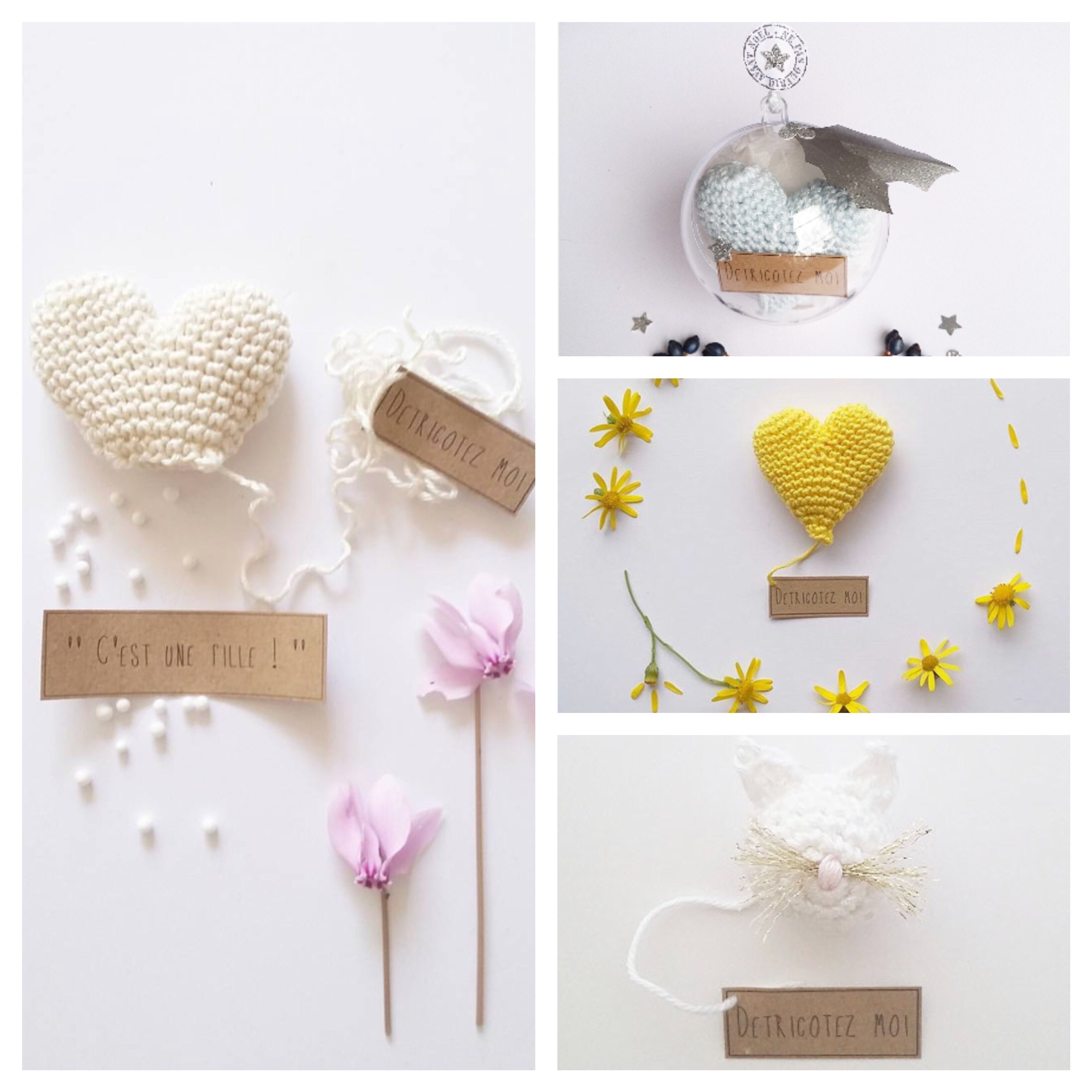 Pour finir, mon coup de cœur ! Une idée pleine de poésie, celle d’ouvrir une petite boite avec un message « Détricotez-moi » puis de tirer sur le fil pour voir se détricoter le petit cœur et laisser apparaître le sexe du bébé ! Effet garanti !