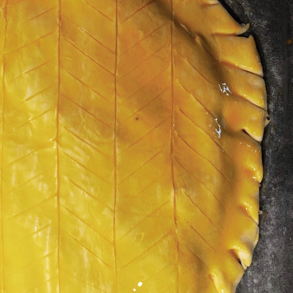 Puis on vient badigeonner la pâte d’un jaune œuf.