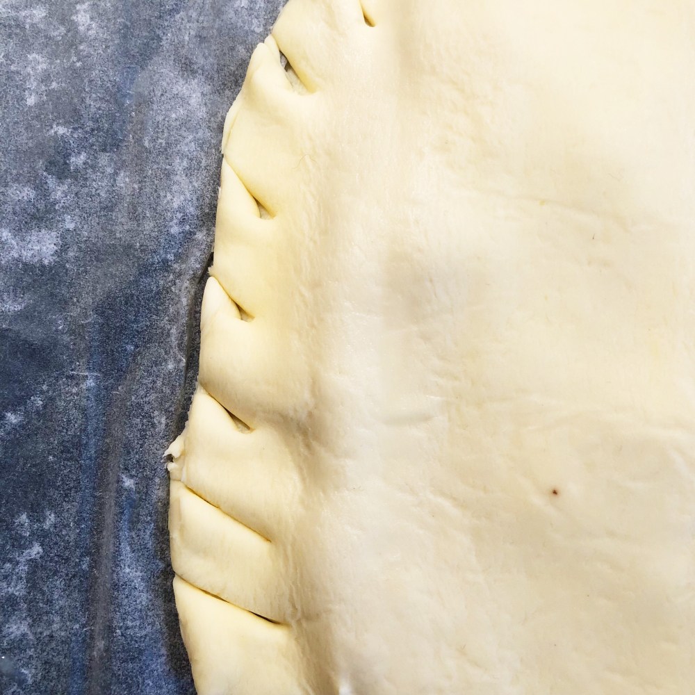 On dépose la fêve (attention à la dégustation avec les loulous), et on recouvre le tout de la deuxième pâte feuilletée que l’on va lier à la première à l’aide d’un couteau en faisant des petites encoches.