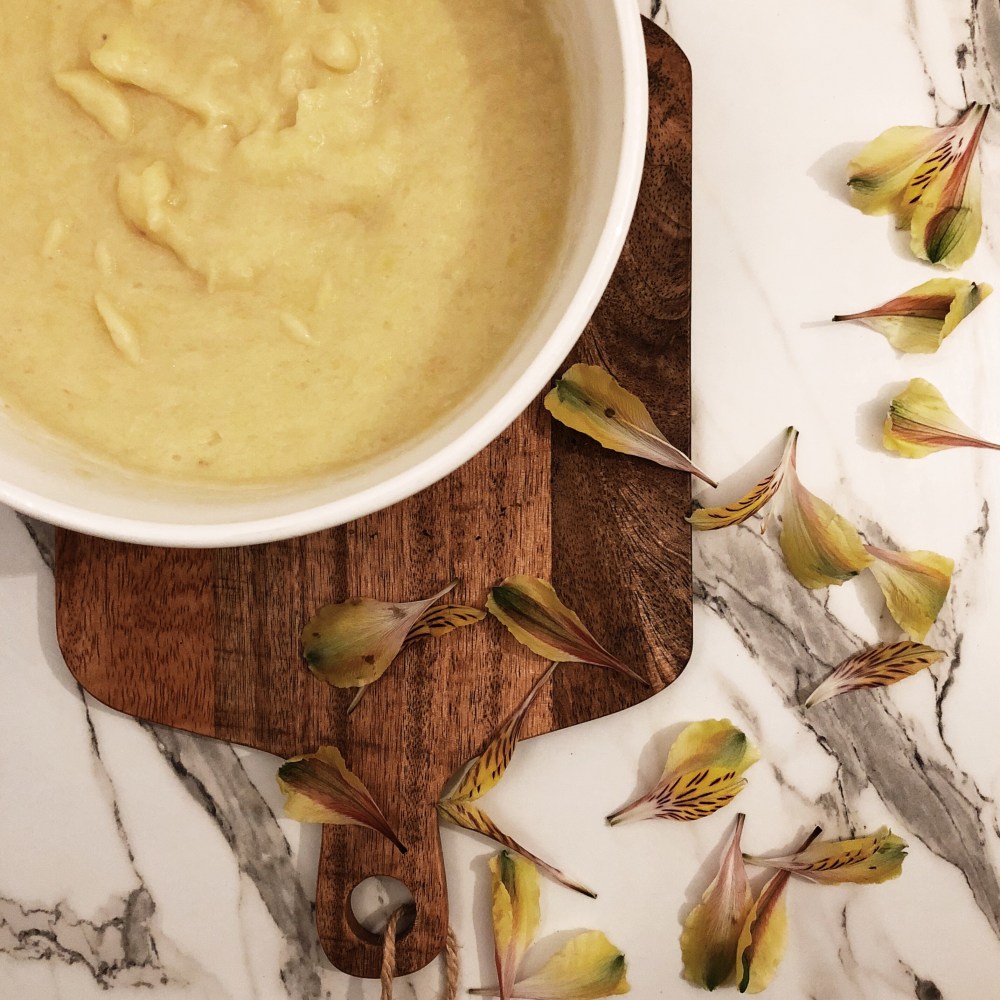 Retirez du feu et mixez (j’utilise le mixeur plongeant MultiQuick de Braun pour toute mes purées et potages) afin d’obtenir une texture lisse.
