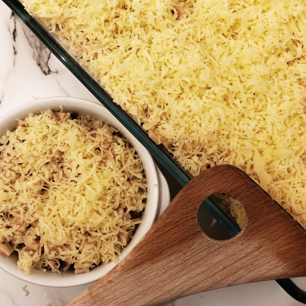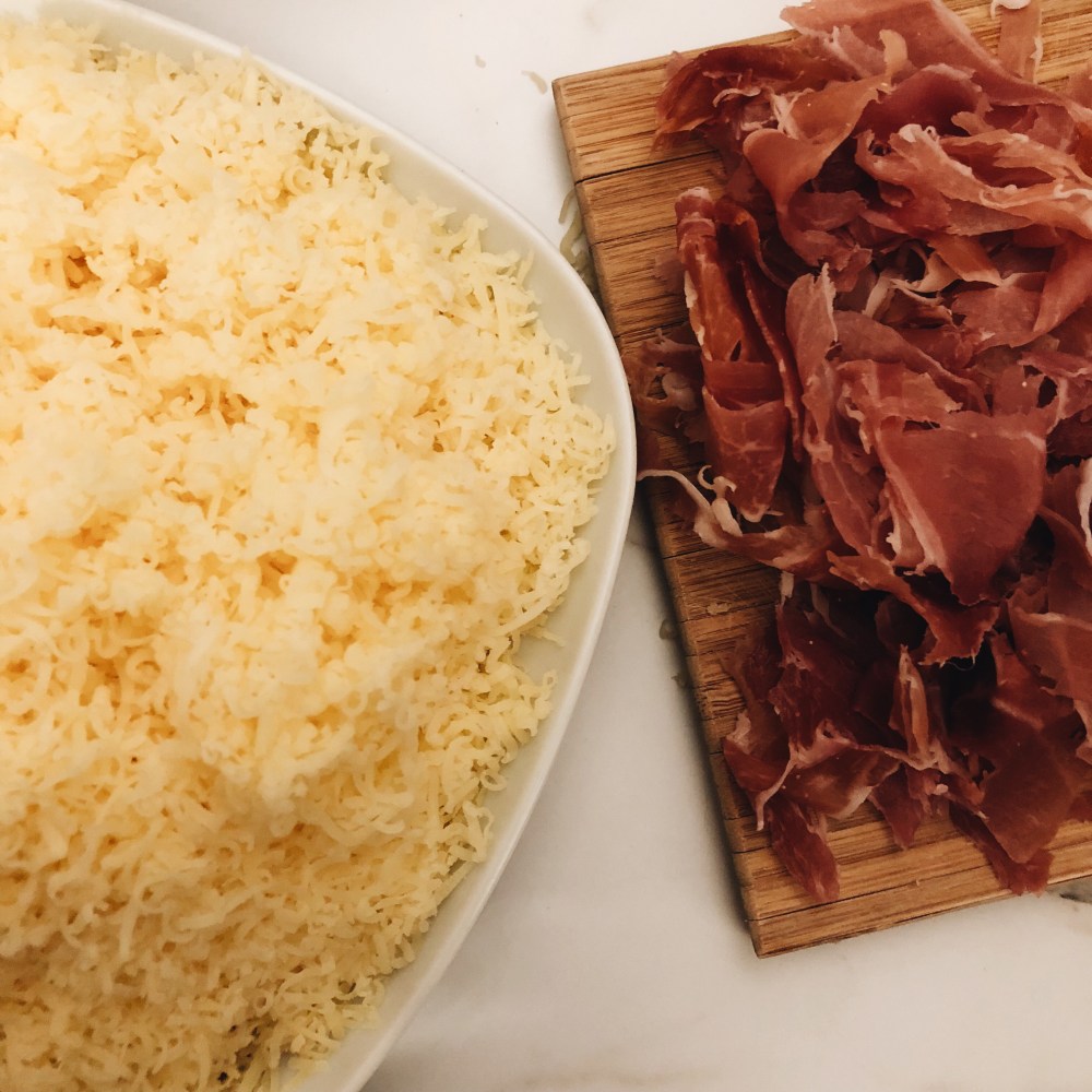 Râpez les 300 g de fromage (j’aurais pu vous dire d’acheter du fromage déjà râpé mais il est quand même meilleur quand on le râpe soi-même ^^)