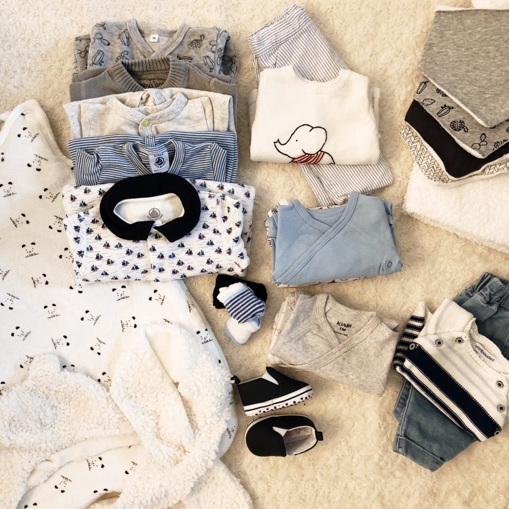 • 5 bodies et 5 pyjamas (de préférence qui s’attache par devant… on trouve nos bébés fragiles et nous avons parfois un peu d’appréhension à les manipuler alors faire passer un body par la tête…)