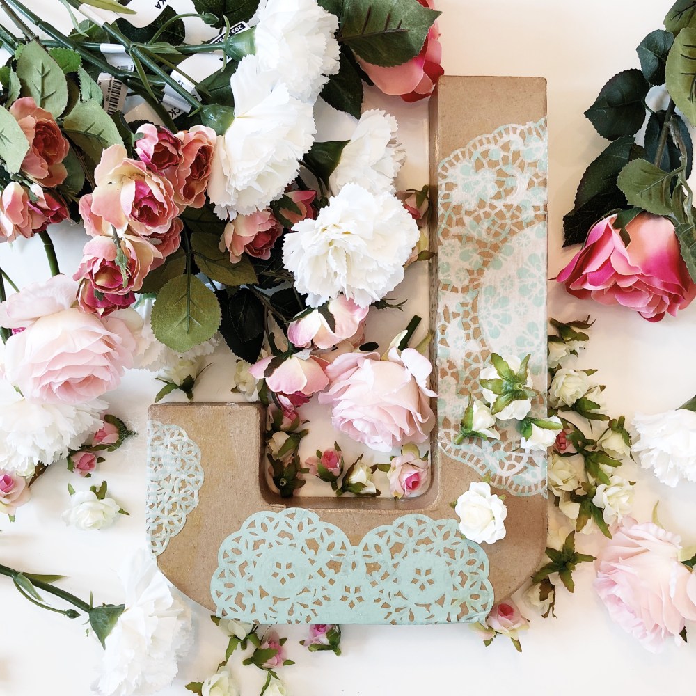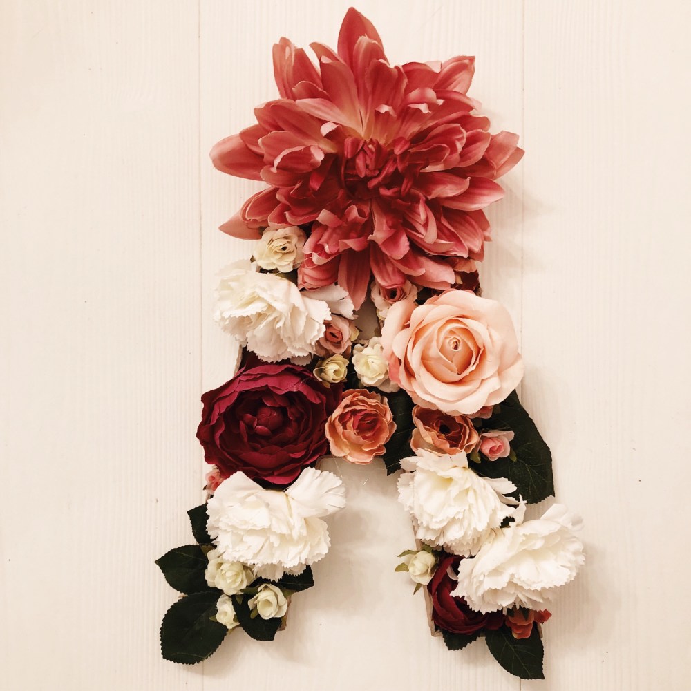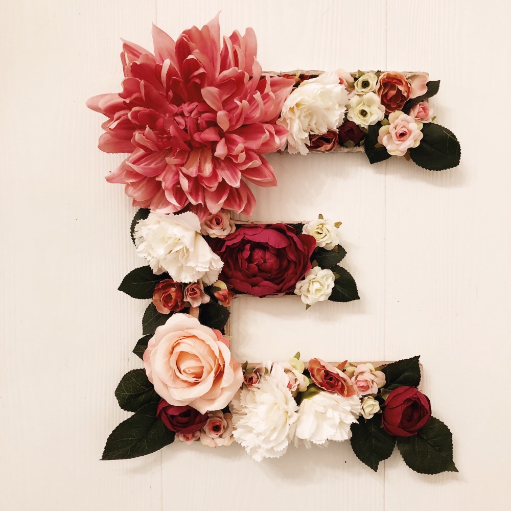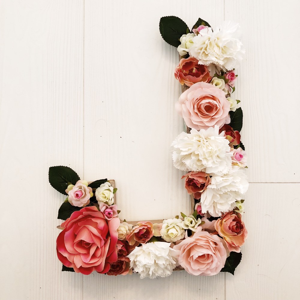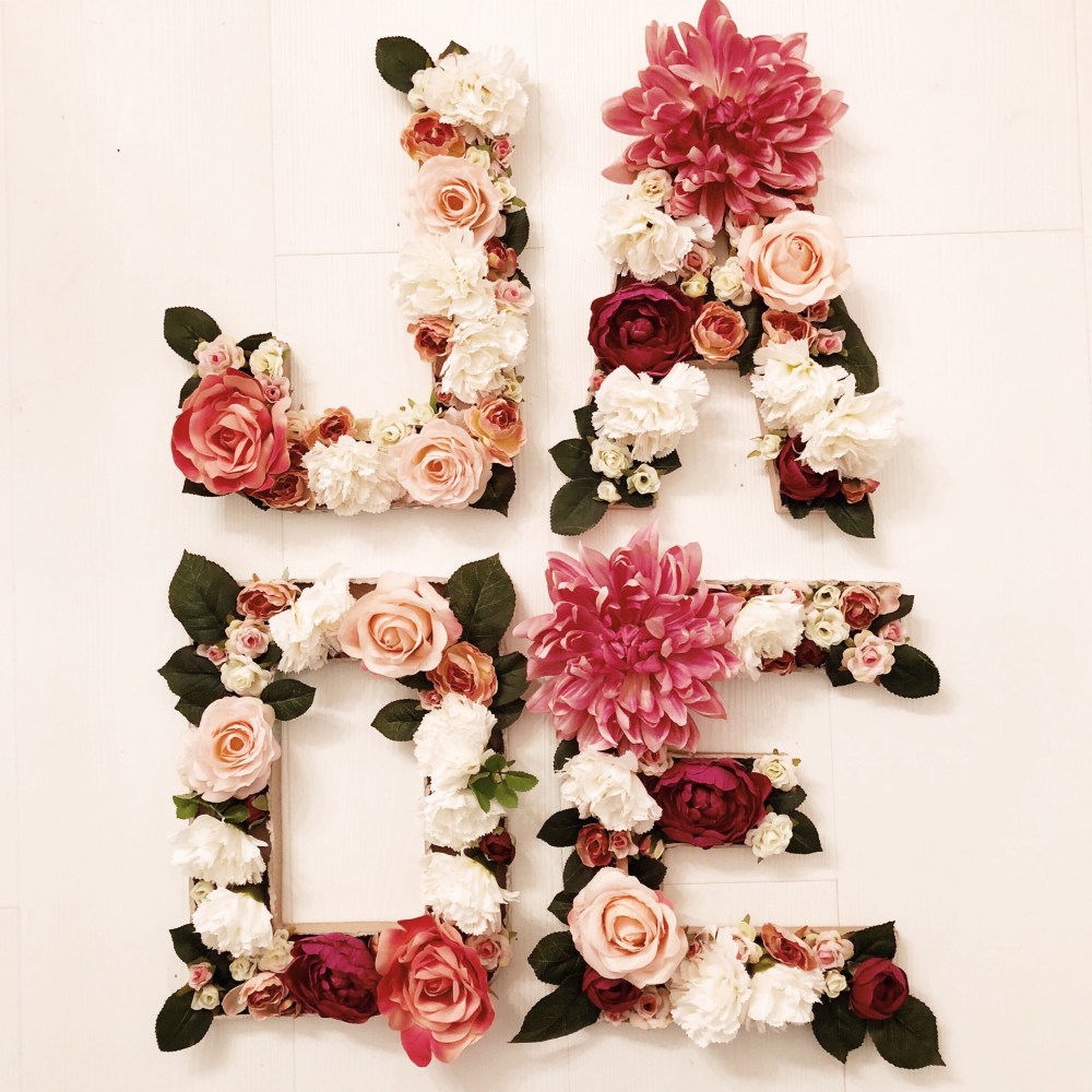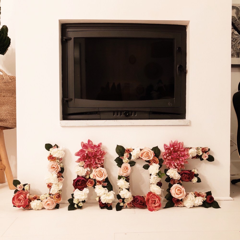 Pour fêter l’arrivée du printemps, j’ai eu envie de réutiliser les lettres en papier mâché du baptême de Jade pour un petit DIY fleuri !