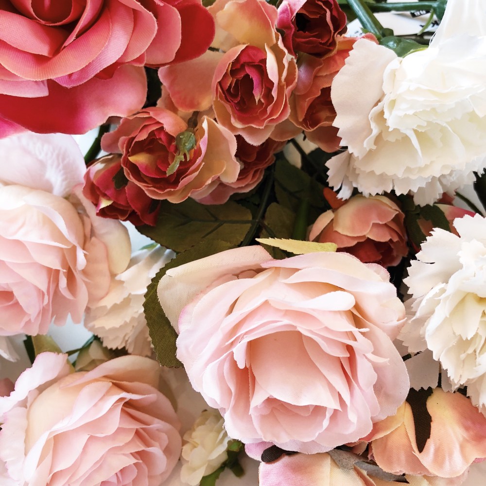 • de fleurs artificielles de plusieurs tailles (j’ai acheté les miennes chez IKEA et sur le site de Butinette)