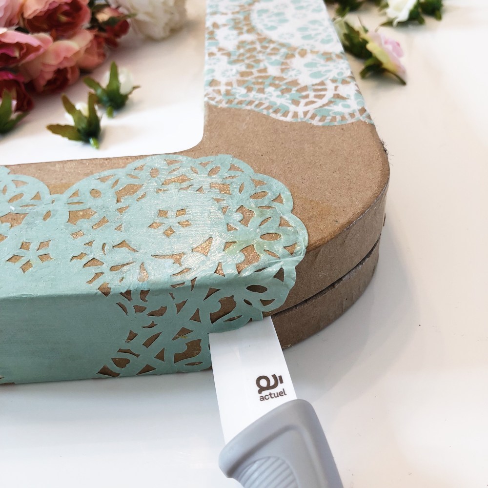 2 – Découper les lettres en carton ou papier mâché en deux pour pouvoir garnir l’intérieur des lettres avec les fleurs.