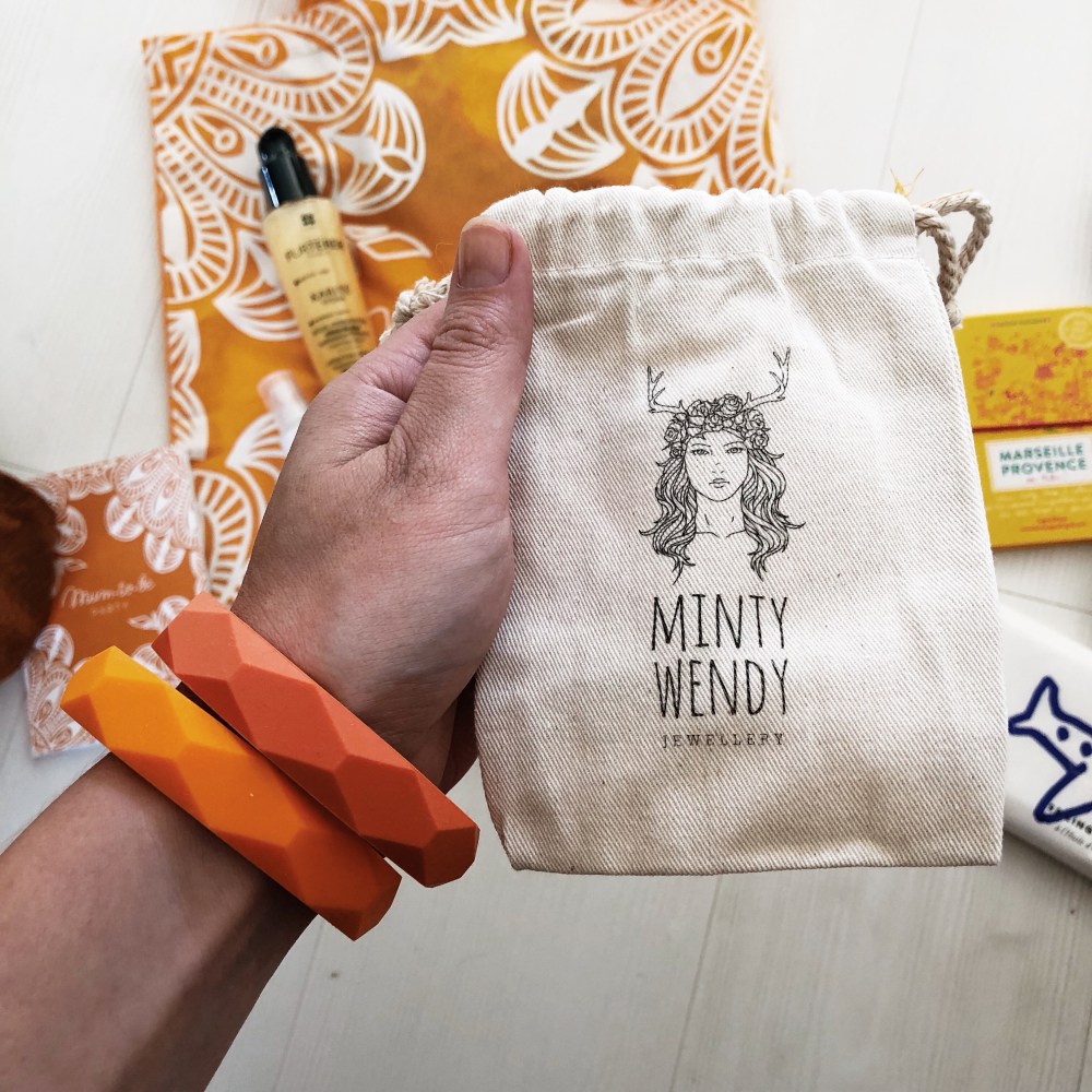 Il s’agit de bracelets (pour maman donc…) mais machouillage (pour Marceau donc…) ! Cette marque pleine de ressource s’appelle Minty Wendy ^^ Et je dois dire qu’avec ce mordeur (sans dent) qu’est Marceau ces bracelets en silicone alimentaire sont parfaits ! C’est quand même bien pratique d’avoir à porté de main (de poignet) un anneau de dentition pour soulager les gencives non ?