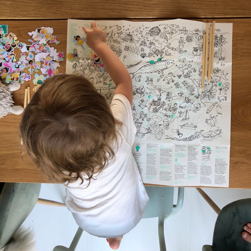 Enfin et là c’est surtout Jade qui a adoré, cette miniminimap de chez Les voyages d’Ingrid à colorier ! Il s’agit d’une carte illustrée regroupant toutes les adresses et activités kidsfriendly de Marseille (mais il en existe pour d’autres villes) et ses alentours. Il nous tarde de retourner à Marseille !