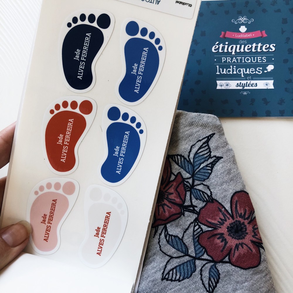 De quoi donc identifier pas moins de 120 vêtements… je crois que j’ai largement de quoi faire ! J’ai déjà mis des étiquettes sur 2 doudous de Jade, sa couverture, son oreiller, son manteau, sa veste, son sac à dos et sur une tenue de rechange en cas d’accident… il me reste donc 110 étiquettes 😁 A l’approche de l’hiver, je pourrai donc identifier son bonnet, son écharpe et ses gants ^^