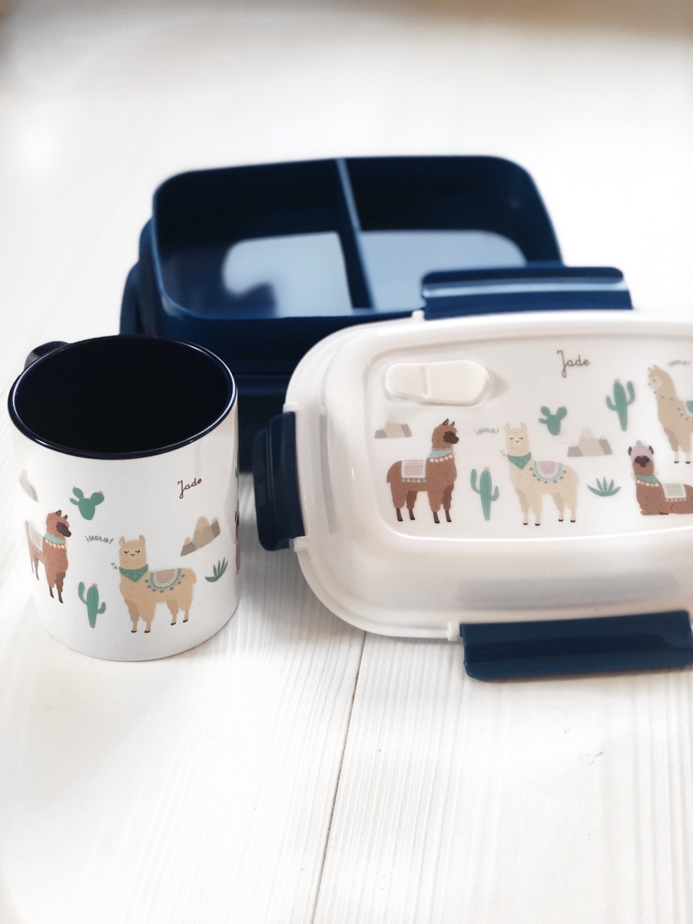 Elle avait déjà une lunch box lama de la marque C-monetiquette qu’elle utilise tous les jours et pour cause ! Jade ayant une allergie aux arachides ne peut pas manger les plats fait par la cantine. C’est pour cette raison qu’une lunch box nous est bien utile pour lui apporter ses petits plats fait maison à la cantine ^^