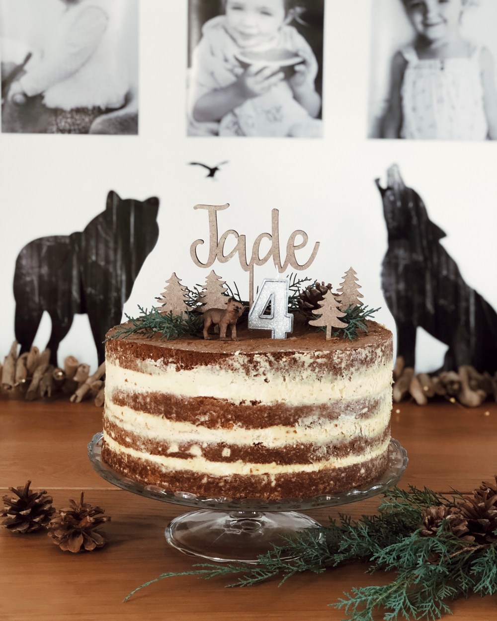 Quoi de mieux qu’un gateau un brin sauvage pour le thème du loup ? Le Naked Cake a l’avantage d’être beau sans en faire trop. Nous l’avons commandé sur le site votregateau, livré quelques jours avant c’est l’idéal. Mais vous pouvez aussi le réaliser vous même, c’est ce que j’avais fait pour les 3 ans de Jade ^^ La recette est ici.