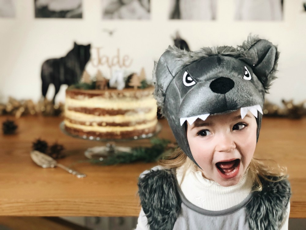 Un anniversaire sur le thème du loup ne peut pas être réussit sans… le loup ! Jade n’avait qu’une hâte, enfiler son joli déguisement de loup pour accueillir tous les invités.