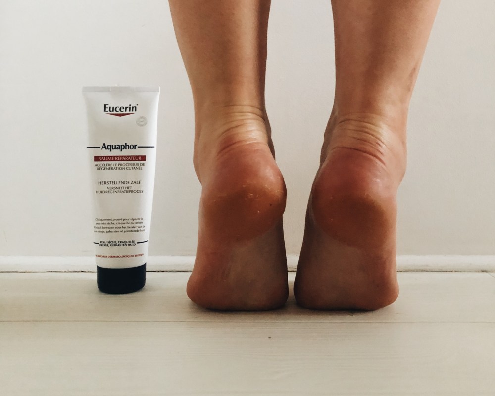 Je limite le temps passé à porter des chaussures qui exercent une pression supplémentaire sur mes pieds. L’été, je proscris (au maximum) les jolies sandales à semelles fines (si fines que l’on sent les cailloux sous nos pieds). Au quotidien, j’évite les hauts talons. Je prends soin de mes pieds. J’enlève doucement la peau dure à l’aide d’une pierre ponce en sortie de bain. J’hydrate. Je fais des masques, le temps d’une nuit, particulièrement l’hiver, avec une noisette de Baume Réparateur Eucerin Aquaphor et le port de chaussette pour intensifier l’effet (et éviter que le produit ne s’étale sur les draps).