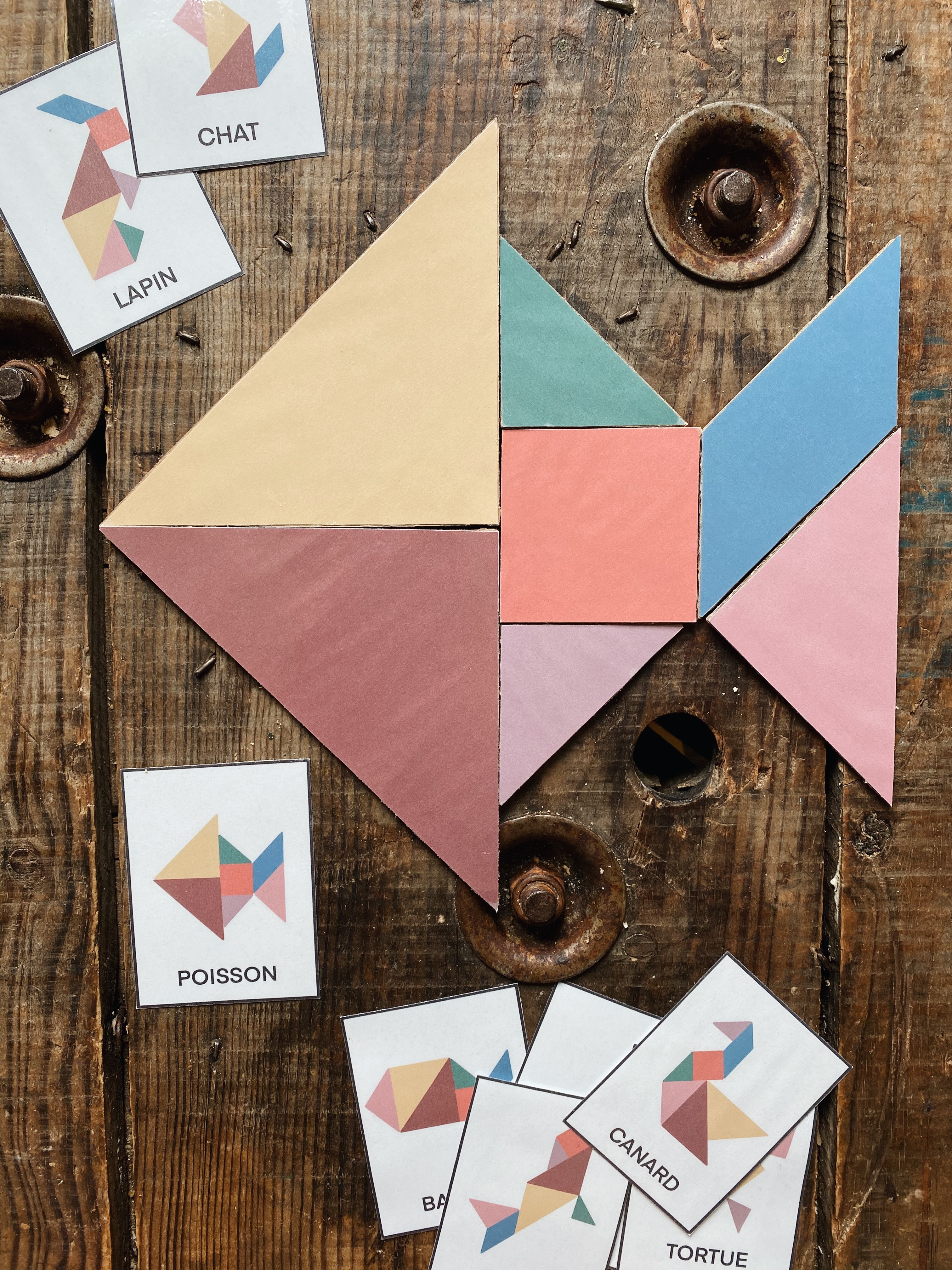 Connaissez vous le tangram ? Cette sorte ce puzzle chinois à 7 pièces et aux combinaisons infinies (ou presque… je crois qu’il existe à l’heure actuelle 5900 différents problèmes de tangram)
