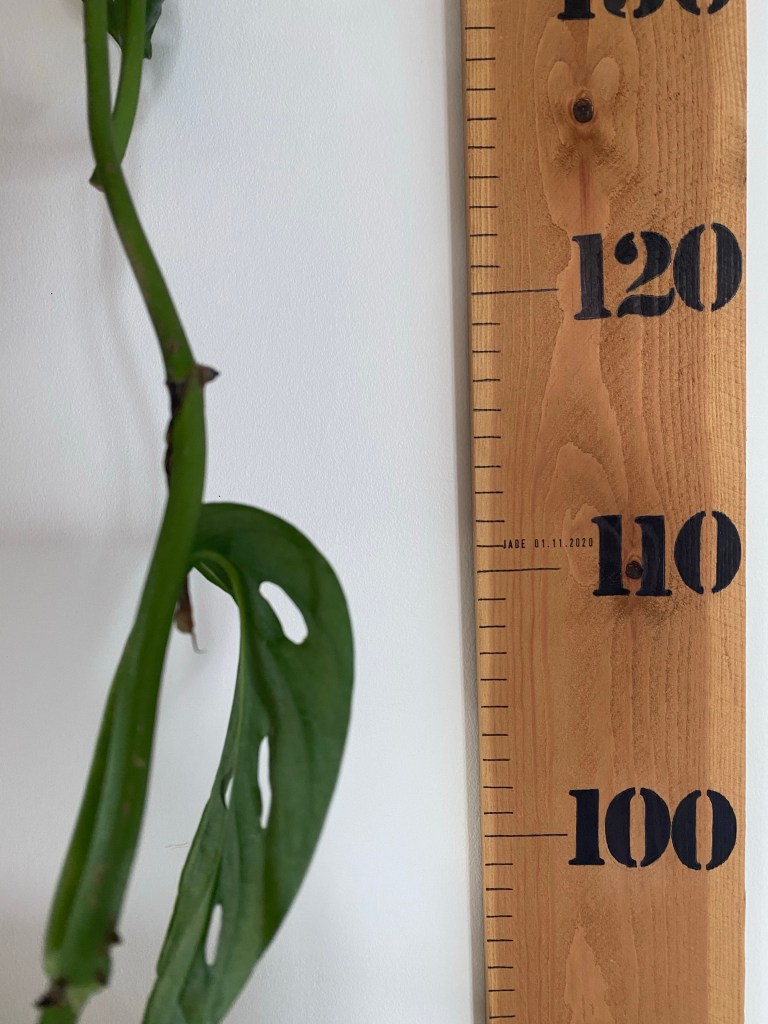 Alors, pour notre chez nous, j’ai réalisé une jolie toise en bois, teintée au marc de café. Une pièce naturelle pour mesurer nos bébés et décorer notre salon. Elle va nous suivre des années. Des souvenirs à disposition et de la nostalgie en illimitée ^^