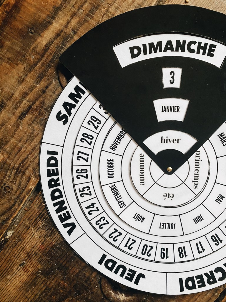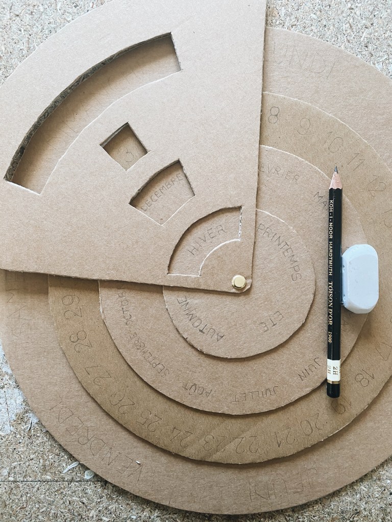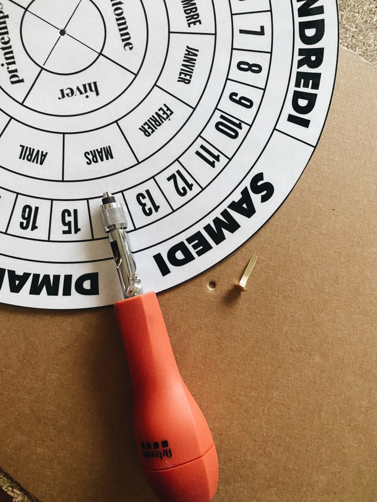 Pour information, j’ai imprimé les roues en format A3 afin d’avoir un grand calendrier perpétuel.