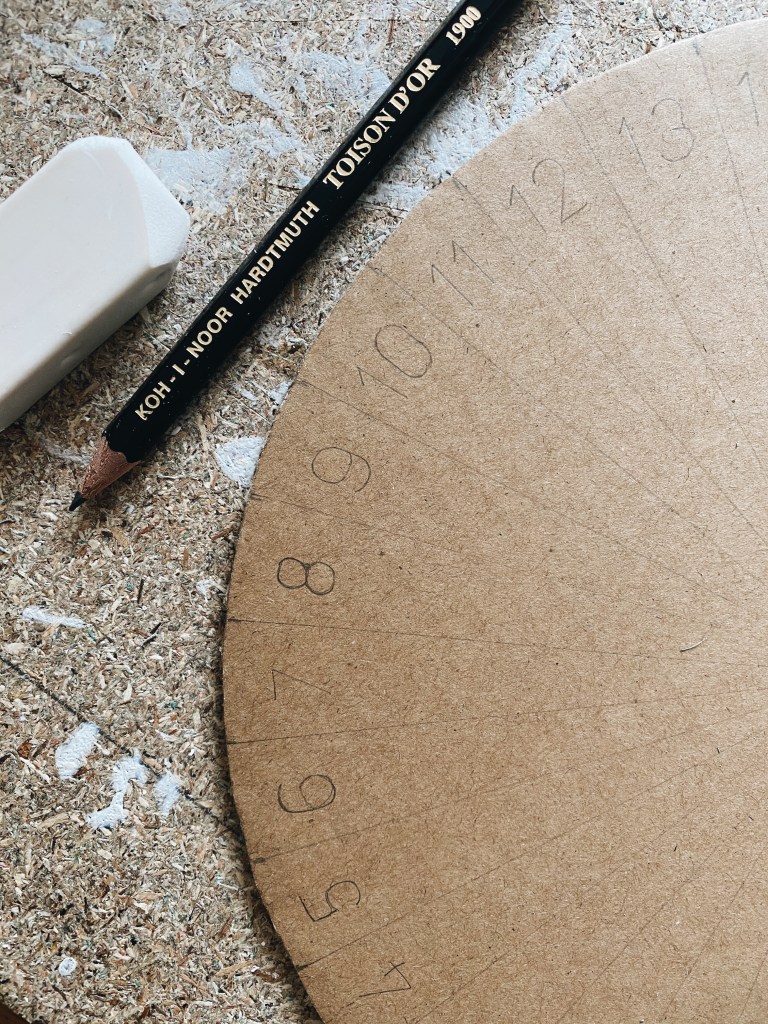 La plus grande roue doit être séparée en 7 secteurs identiques pour placer dans chaque secteur un jour de la semaine. La deuxième roue doit être séparée en 31 secteurs identiques pour les quantièmes -le numéro du jour-. La troisième doit être séparée en 12 secteurs identiques pour les 12 mois de l’année. Enfin, la plus petite roue doit être séparée en 4 secteurs identiques pour les 4 saisons.
