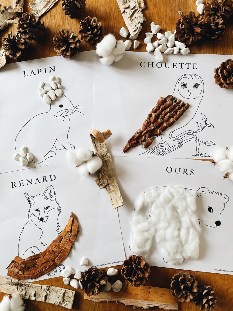 Chuut, pas un bruit, voici nos jolis animaux d’hiver. Une belle activité à réaliser lorsqu’il fait froid.