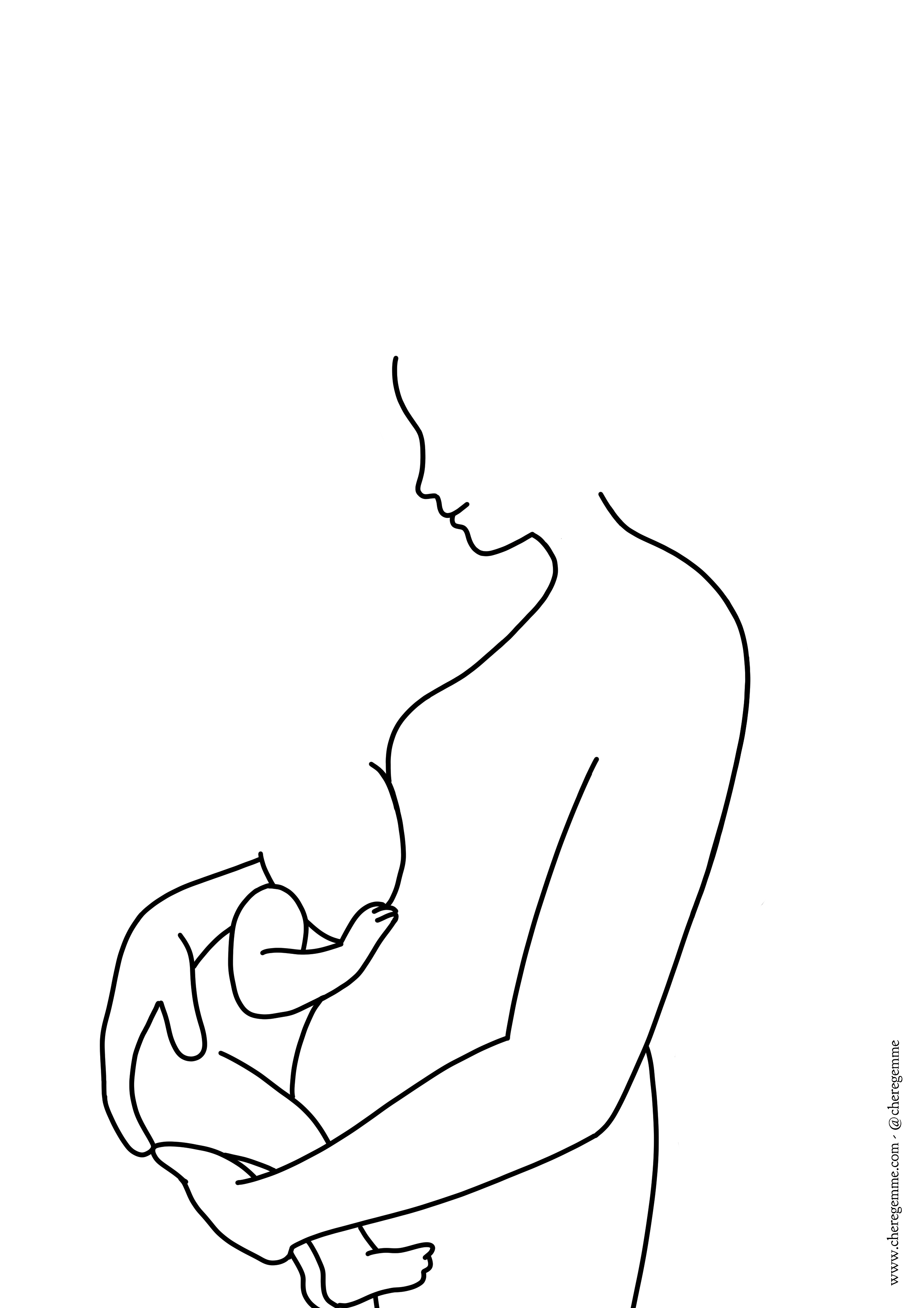 Dans notre précédente activités, les dessins minimalistes illustraient des femmes et des enfants (à retrouver ici). Cette fois c’est la maternité qui est au coeur de l’activité autour de 4 illustrations.