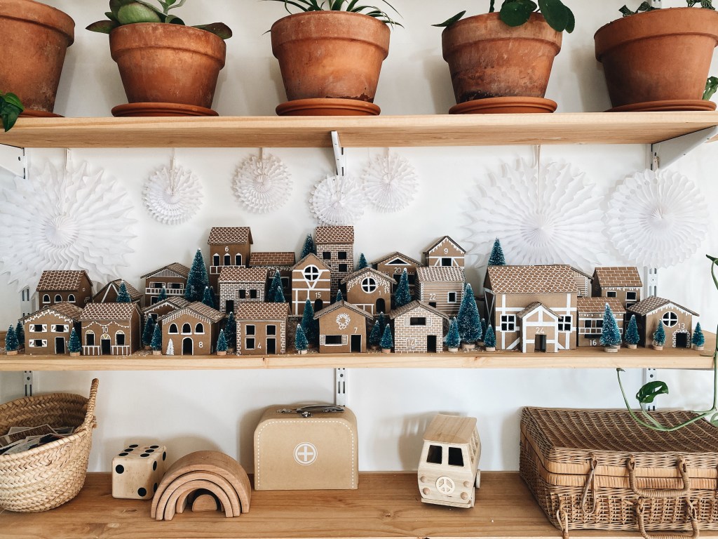 Petite, j’aimais quand mes parents passaient dans les petits villages illuminés en période de Noël. Je les ai toujours adoré et admiré. Cette accumulation de petites maisons, semblables et à la fois différentes formant un joli village plein de charme. Comme un film, un conte de Noël. Alors à l’arrivée des fêtes, j’ai eu envie de mettre une peu de cette magie des villages de Noël dans la maison.