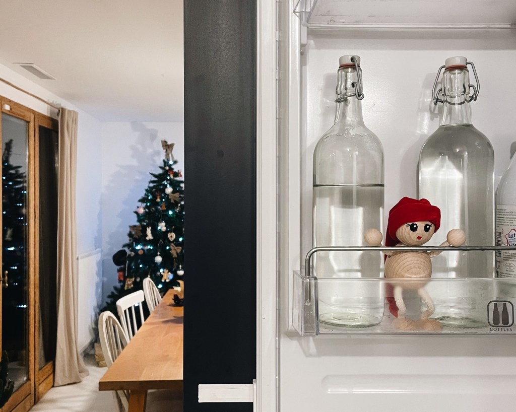 Le lutin farceur ou elfe de noël peut s’inviter selon la tradition, le jour de Thanksgiving (4ème jeudi de novembre), le jour de l’Avent (4ème dimanche avant Noël) ou plus simplement encore le premier jour de décembre. A la maison, comme dans le conte de noël « Les aventures de Elka », notre lutin est arrivée dans l’endroit le plus froid de la maison : le réfrigérateur.